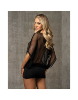Une mini-robe audacieuse mêlant transparence suggestive et confort stretch, parfaite pour une soirée inoubliable.