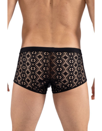 Ce boxer noir sensuel combine microfibre douce et résille brodée latérale, créant un design audacieux pour l'homme moderne.