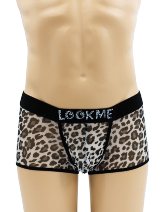 Ce shorty en résille transparente révèle un motif léopard sensuel, sublimé par une ceinture élastique. Il allie légèreté et confort pour une allure féline raffinée.