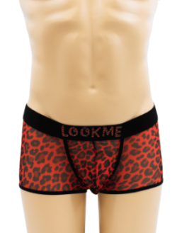 Ce shorty en résille transparente arbore un audacieux imprimé léopard rouge, offrant une lingerie à la fois séduisante et confortable.