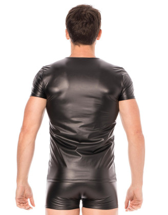 Top résille noir brodé, manches courtes