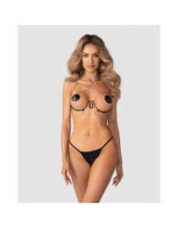 Cet ensemble de lingerie noir combine un soutien-gorge à armatures avec un string en dentelle, offrant un maintien parfait et une silhouette sublimée.