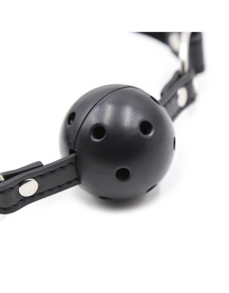 Ce bâillon boule noir, conçu en similicuir souple, offre confort et ajustement parfait pour vos moments intimes. Son design raffiné apporte une touche de mystère et d'élégance à vos explorations sensuelles.