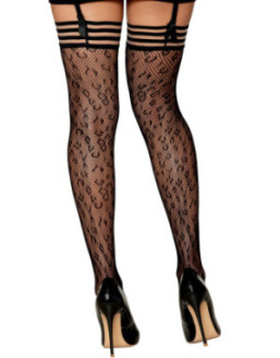 Collant résille noir grande taille, liseré couture arrière et nœuds satinés