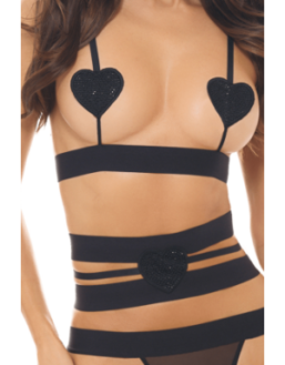 Ensemble Lingerie Noir Dentelle Fleurie et Bretelles Croisées