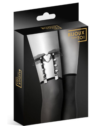 Jarretière Noire Audacieuse, Cœur Métallique et Rivets