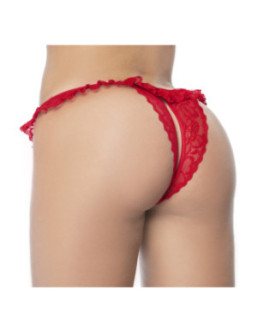Ce string audacieux révèle une dentelle florale délicate et une coupe ouverte, conçue pour sublimer la silhouette avec une touche de sensualité.